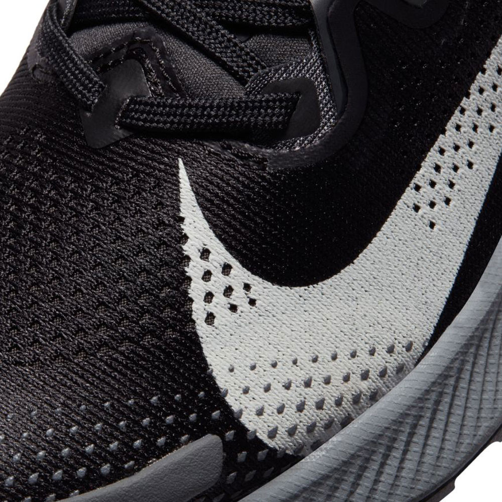 Developed using a durable rubber the outsole of the Nike Pegasus Trail 2 Running Shoes ensure durable protection on the trails. The forefoot and heel have been constructed using abrasion-resistant materials to ensure long-lasting durability and grip. The durable rubber provides a strong grip on the most challenging terrain; it works to protect itself from damage, and protect users from losing control and slipping. Placed specifically in these two areas of the outsole the abrasion-resistant rubber protects as you strike down and take off. A shockwave-like pattern not only provides a fast, bike tire-inspired look but, it also ensure increased grip when changing direction. Grippy outsole nubs mean optimal grip and easy mud shedding, never killing your pace with weight, and they're strategically placed with a sharp, crisp shape to amplify grip in every direction, in every condition. Lastly, Toe fangs at the forefoot help enhance traction and protect the upper from the trails and tribulations of the trail.