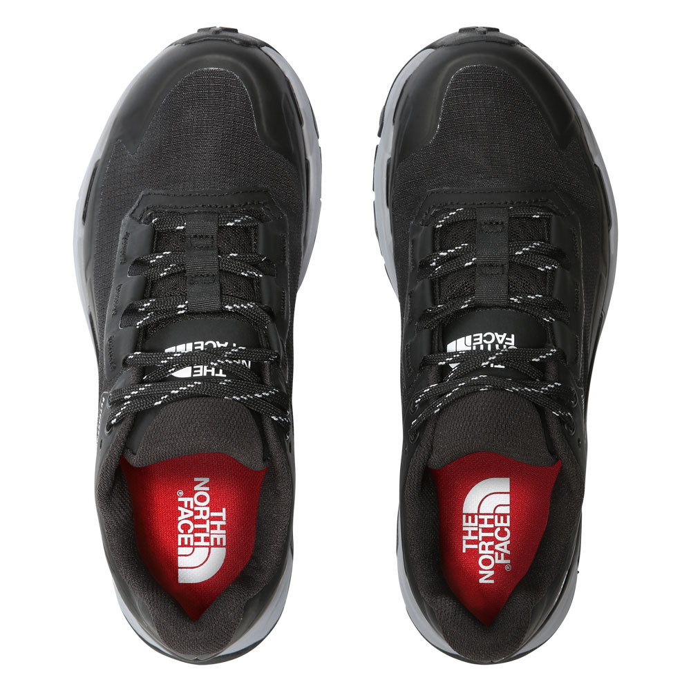 Designed to maximise energy on the trails, the midsole has been constructed using The North Face's revolutionary Vectiv technology. The Vectiv system works to provide you with more energy return by reducing fatigue and helping you prepare for the next toe-off. Vectiv technology minimises energy loss, increases propulsion, and delivers an abundance of structural support making movements feel effortless and giving you the confidence to reach new PB's. Within the midsole, a rocker geometry is engineered to create long-lasting forward propulsion so you'll always feel ready to take your next step. The curved nature of the soles delivers outstanding energy return and works to create fluid moves throughout the gait cycle for optimal efficiency. To ensure complete comfort, the lightweight ground-contact EVA foam helps to cushion the feet as you strike down on hard, unforgiving surfaces. The soft nature of the foam ensures complete comfort on uneven terrain so you can go further for longer. As well as this an Ortholite footbed provides added underfoot comfort as well as moisture management that works to keep your feet cool and dry. Completing the midsole is a dual-density 3D TPU plate underfoot which offers multi-directional stability and forward propulsion.